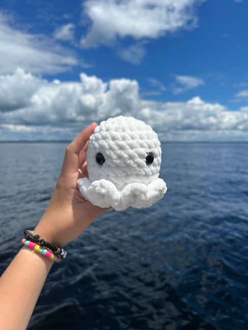 Hello! This is a pattern for a little ghost plushie. It's great for the Fall and great to make in bulk. It takes less than 30 minutes to make and is a great gift. Please share your creations with me I would love to see them!