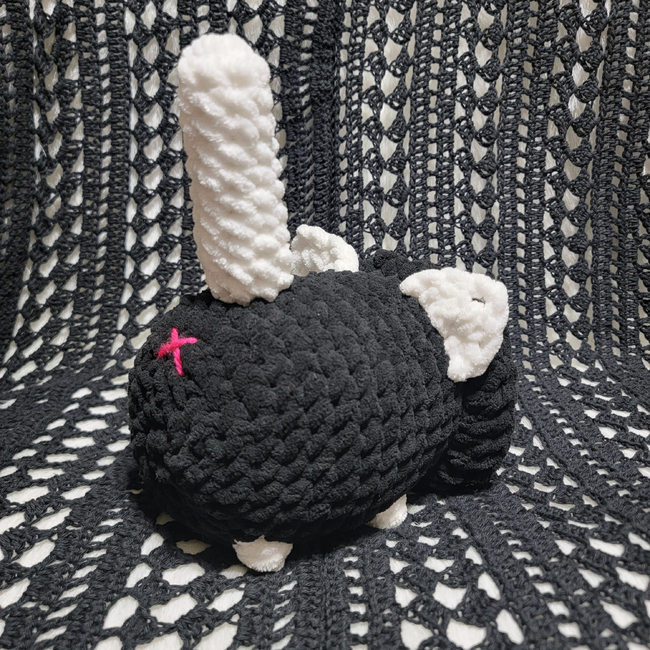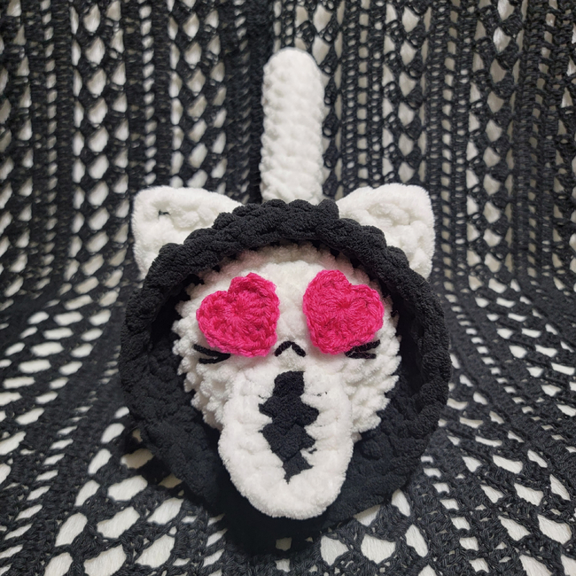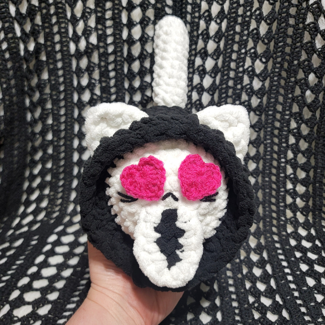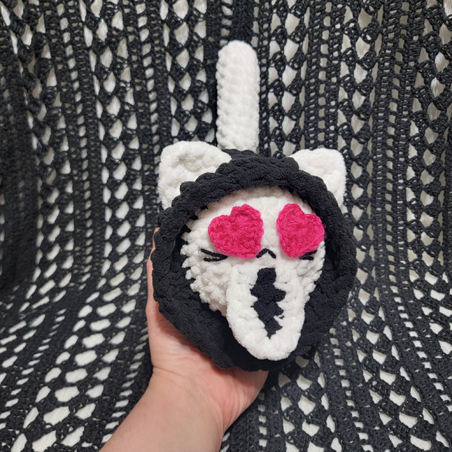 CheriReeCrochet designed the Ghosty Slasher Loaf Cat pattern. Find more of their patterns on their Ribblr shop page.