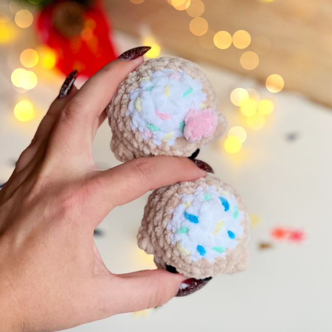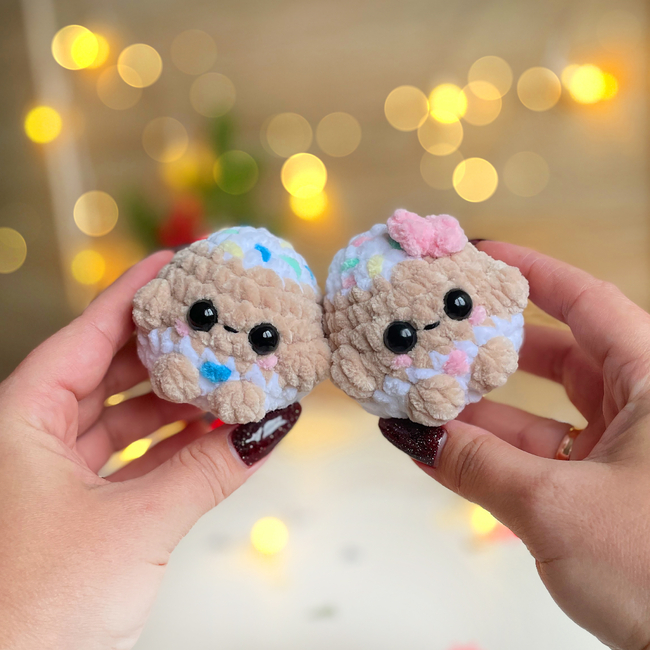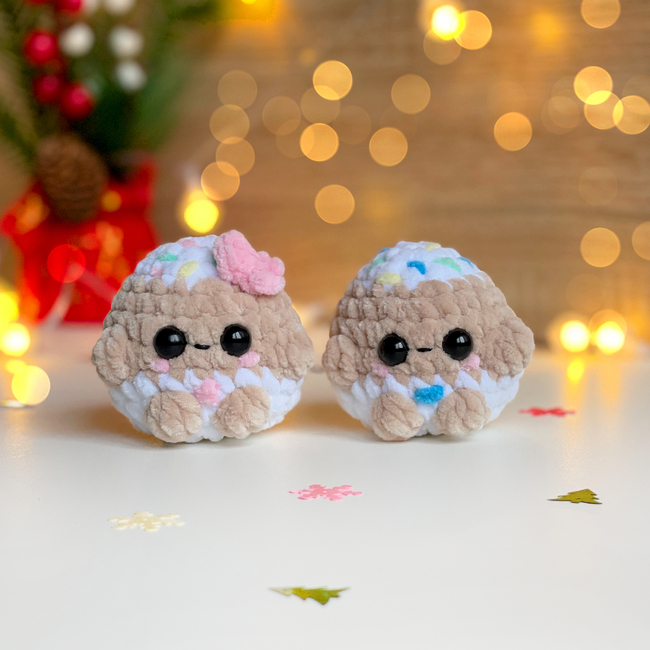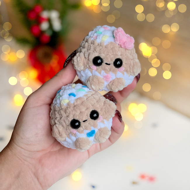 This pattern includes a gingerbread duo two tiny plush cookie-style characters, perfect as keychains, ornaments, or Christmas gifts
