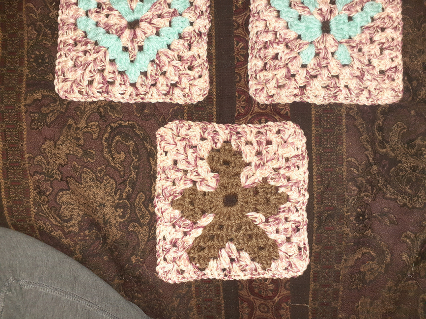 Gingerbread Man design  Continuous Granny Square 5 Row Project Square