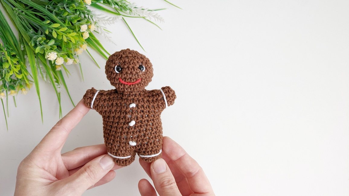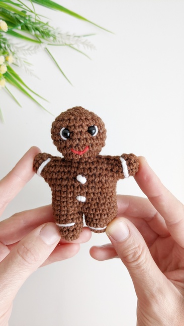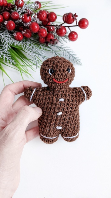 This Gingerbread Man is an easy NO SEW crochet pattern. It can become a fun decoration for your Christmas tree, or can make a super adorable toy for your little one!