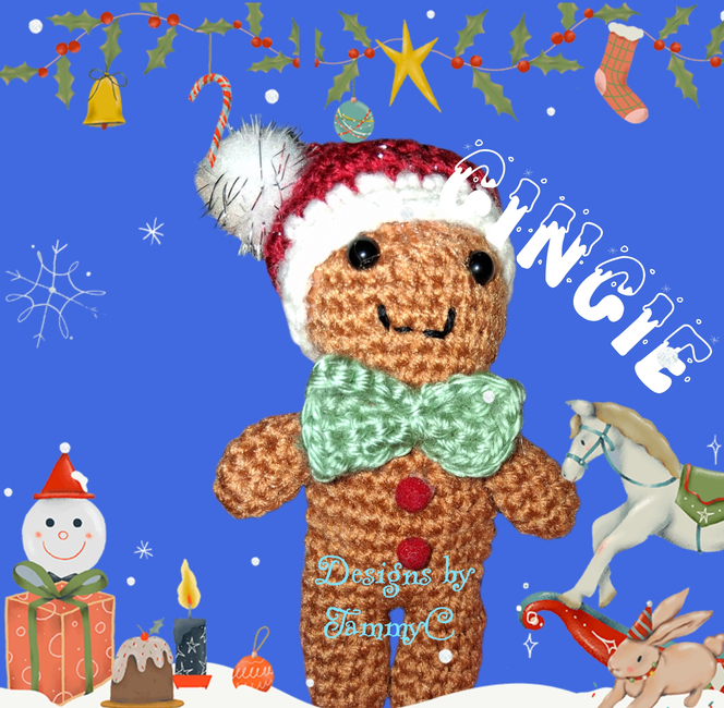 I hope you enjoy making Gingie. The pattern will work for any yarn type (including chunky) and any hook size. Gingie is the perfect tree decoration or gift for that sweet mail delivery lady, friend at the office, or teacher at school.