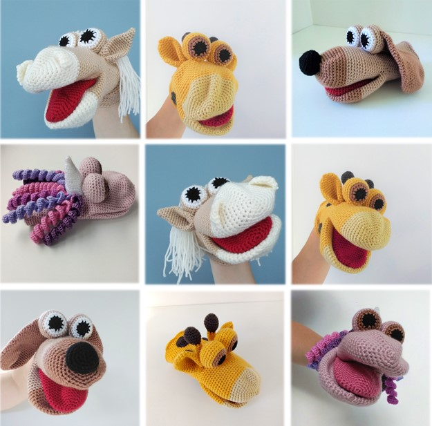 This bundle includes four original patterns to crochet your own Set of Hand Puppets Includes A Dog, Giraffe, Horse and Unicorn These hand Puppets will keep the kids entertained for ages, They will love them! Especially if they are m made by you!