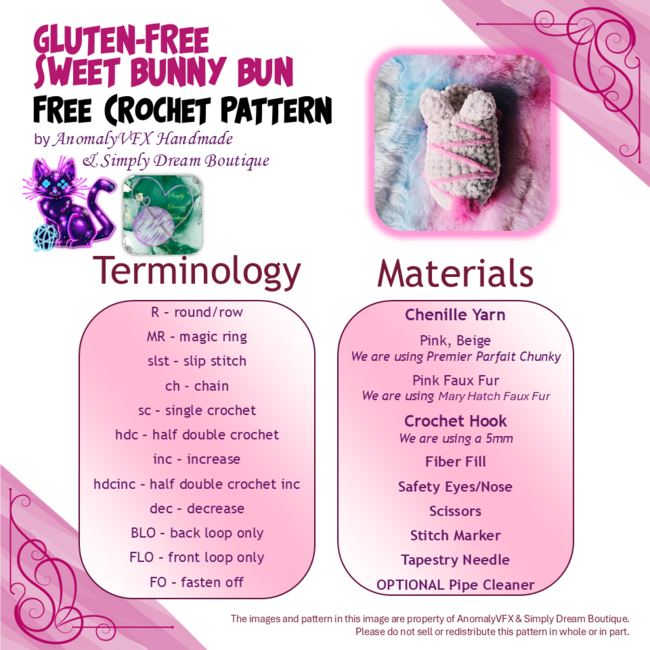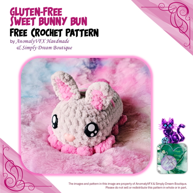 Gluten-Free Sweet Bunny Bun is a Beginner Crochet pattern designed by Quirky Anomalies for making an Amigurumi. With a little time and a lot of fun, you will be able to crochet yourself the yummiest Gluten-Free Sweet Bunny Bun! Safe for anyone with celiacs to snuggle and play with. TerminologyR round/rowMR magic ringslst slip stitchch - chainsc single ...