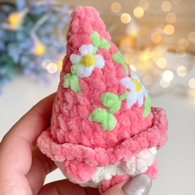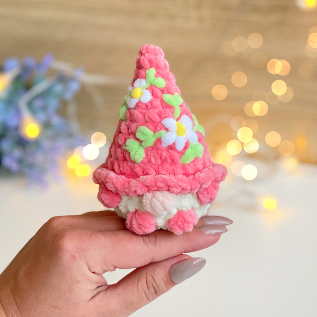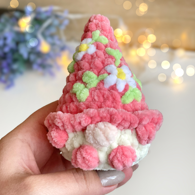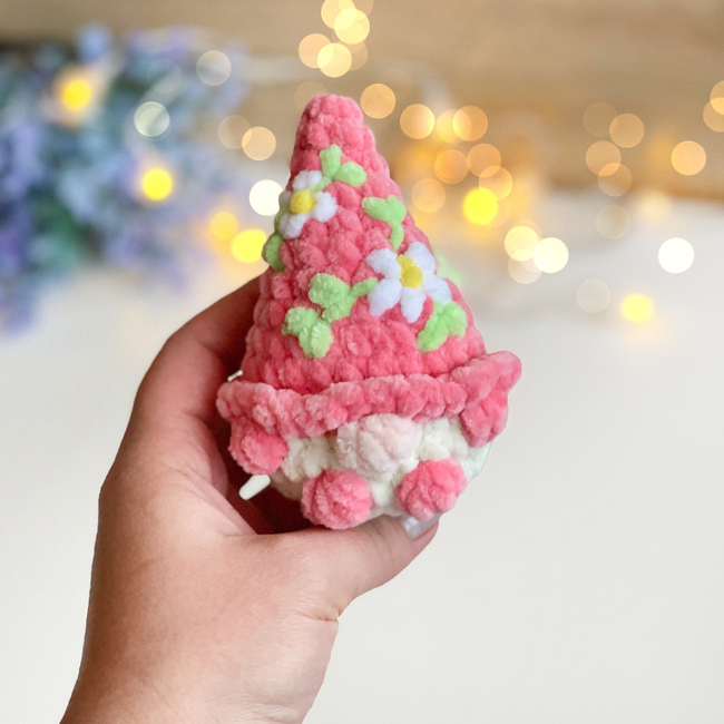 This soft plush gnome is designed to be completely no-sew, making it a perfect quick and satisfying project. The bright floral hat and tiny details give it a charming spring look ideal for Easter decorations and handmade gifts.