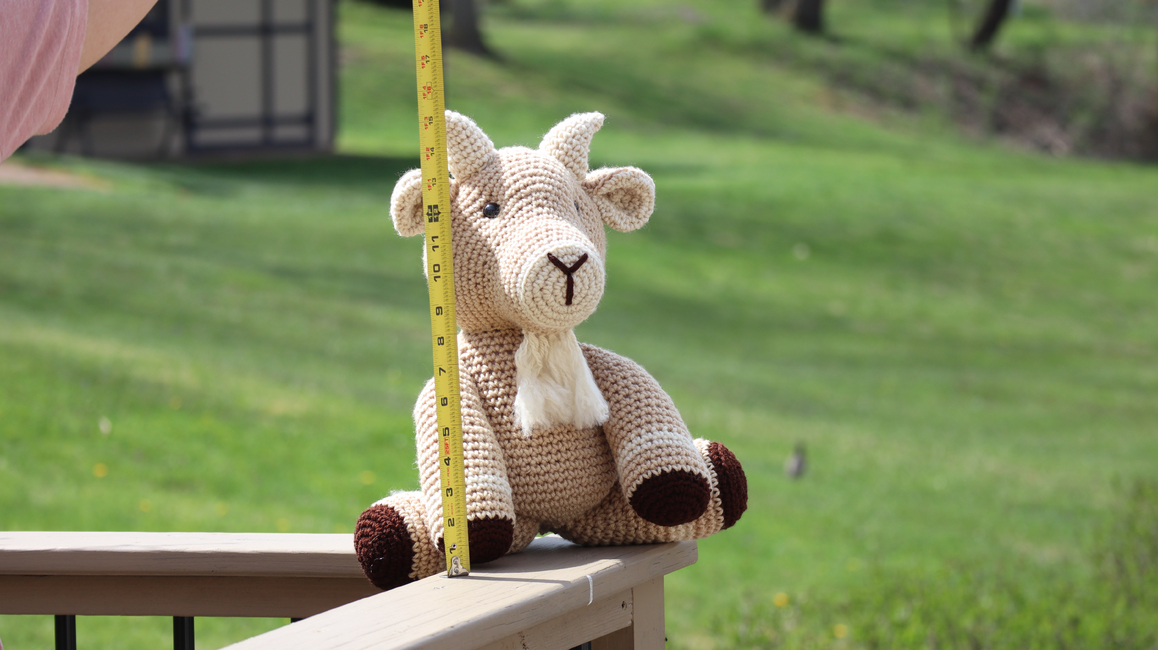 Billy the Goat measures approximately 15" tall (sitting) x 10" wide.
