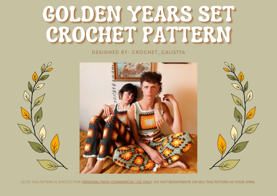 Golden Years Crochet Matching Set pattern can be made in any colour combinations with any size yarns and the sizing/lengths are very customisable.