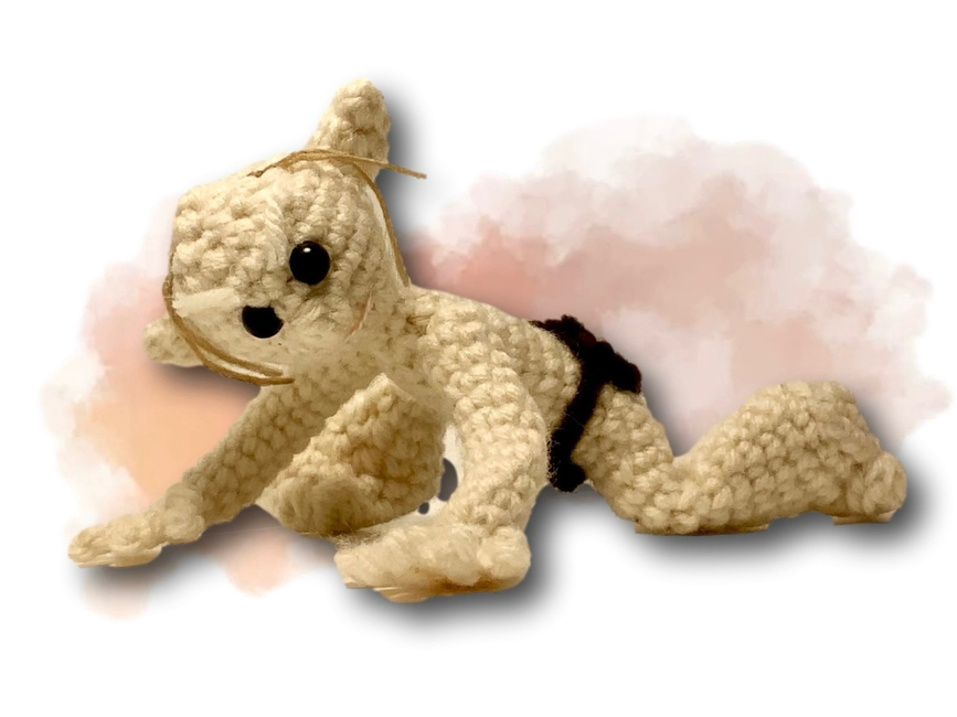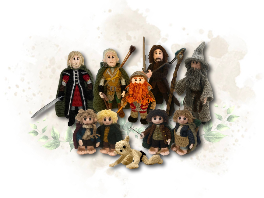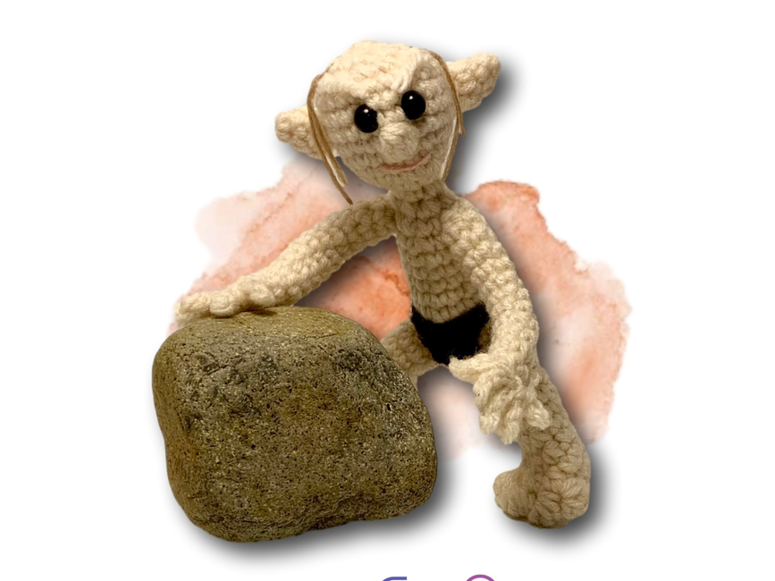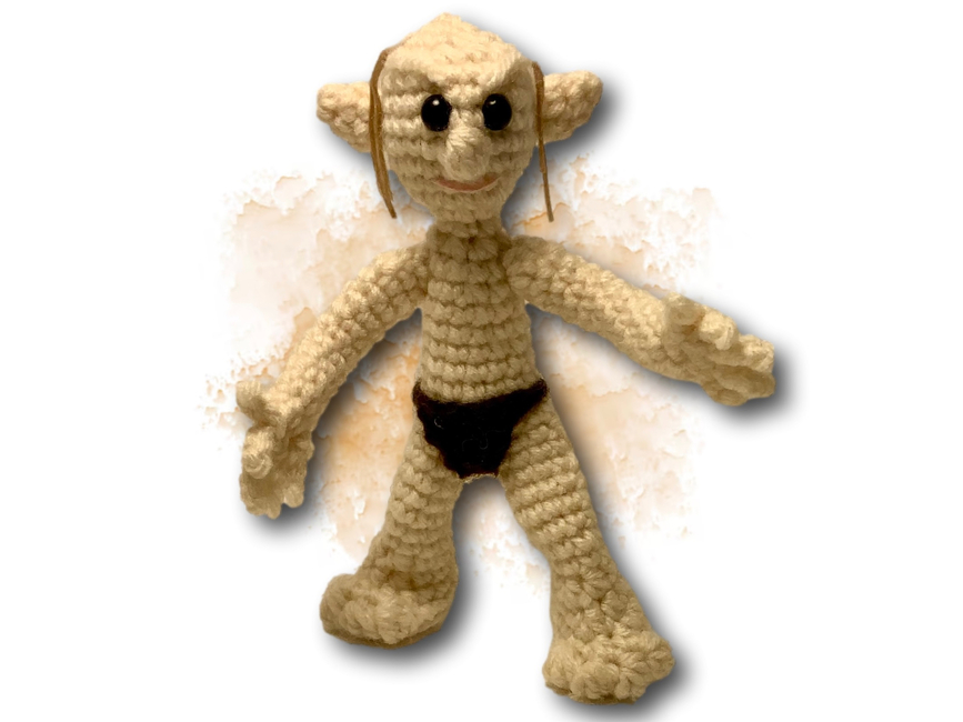 A villain, or just an unfortunate hobbit gone bad? Mostly devoid of hair and clothing, this doll is quick and simple to create with just three colours of worsted weight yarns, and suited for crocheters with some experience. Wired limbs provide flexibility for easy crouching, creeping, lunging, skulking about, or engaging in a simple game of riddles.