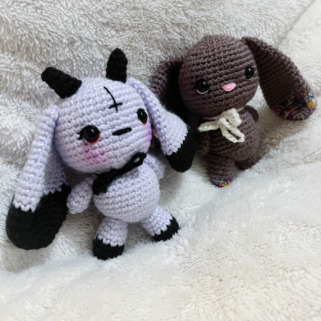 Goth Girlfriend and Bunny are an adorable duo! This pattern focuses on the goth bunny but the other bunny is made the exact same way without the horns :)
