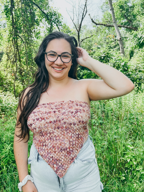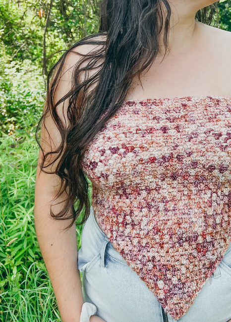 YarnThrift designed the Grandana Top pattern. Find more of their patterns on their Ribblr shop page.