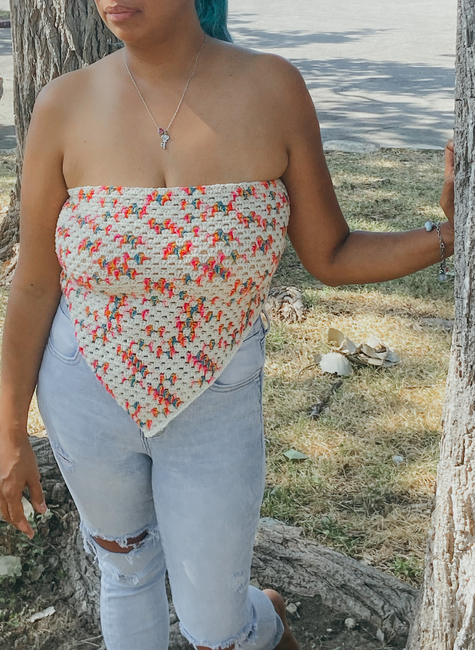 Meet the Grandana Top, a super beginner-friendly crochet top that's made all in one piece using the granny stitch. This top is worked from the bottom up, working in increased rows until the final bust measurement is reached, at which point, rows of the same length are worked until the final length of the top is completed.