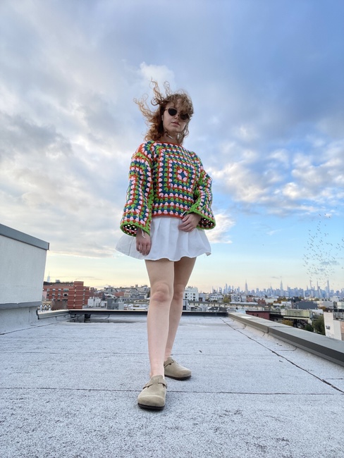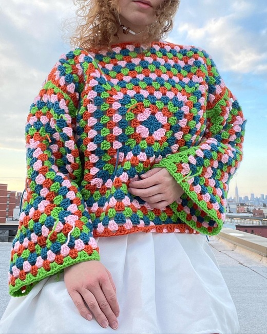 SageMay designed the Granny Square Sweater pattern. Find more of their patterns on their Ribblr shop page.