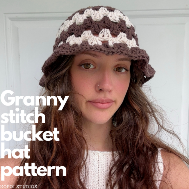 Granny stitch bucket hat is a Beginner Crochet pattern designed by kopoi studios for making an Accessories. Very easy bucket hat pattern, perfect for beginnersOne size fits allinstant download, PDF file