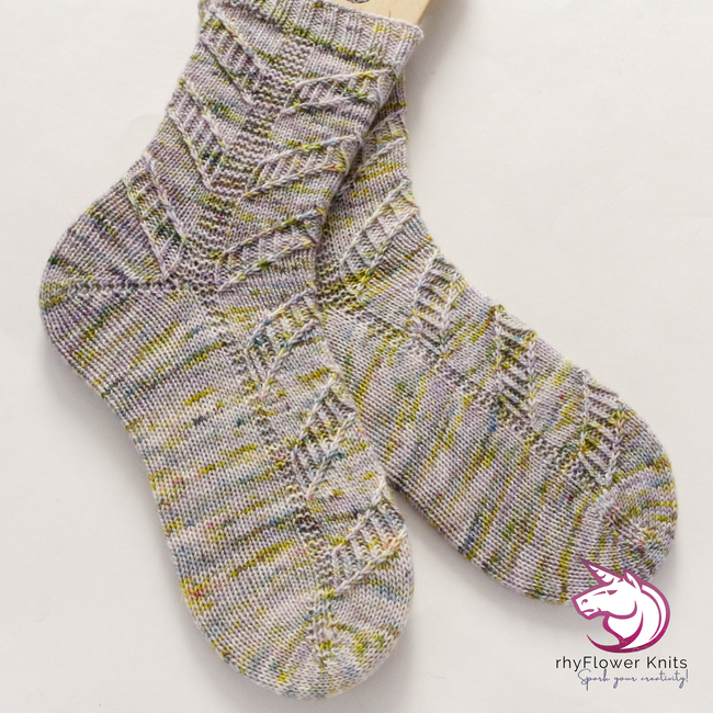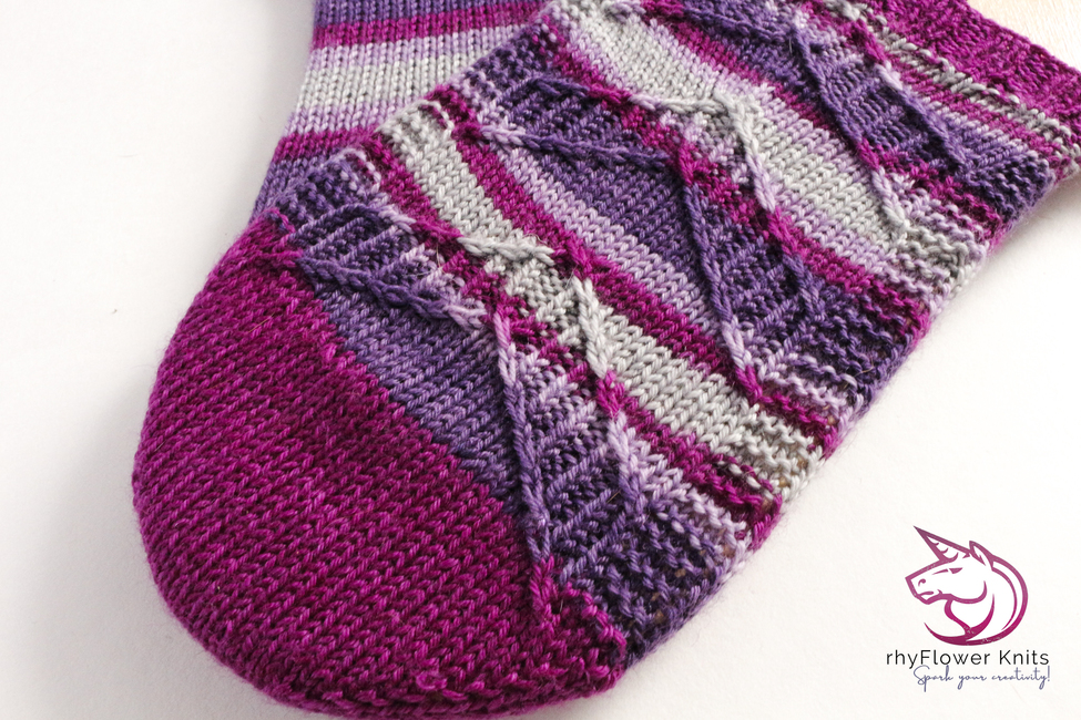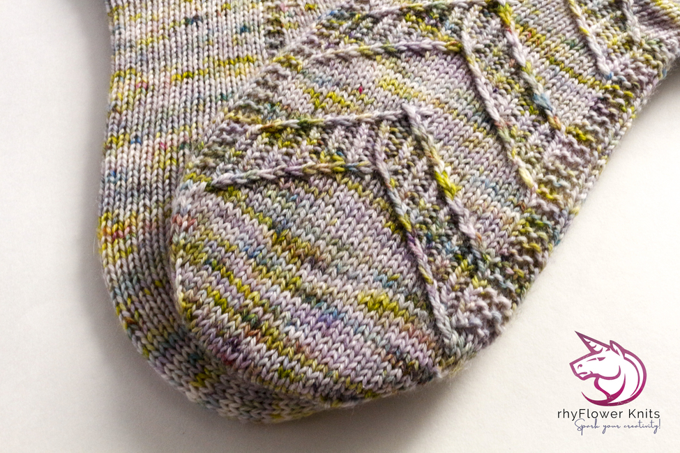 The pattern is written for the magic loop method for knitting socks; however, the design could be worked on double-pointed needles or mini-circulars instead should you prefer (ensure you denote your instep stitches with extra markers – so you don’t miss the placement of the heel or toe shaping).
