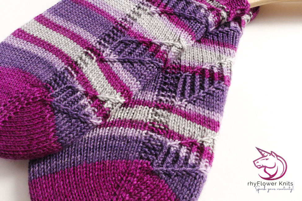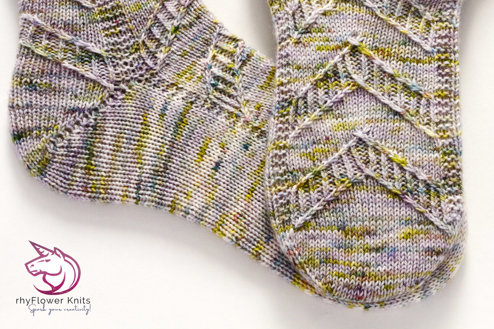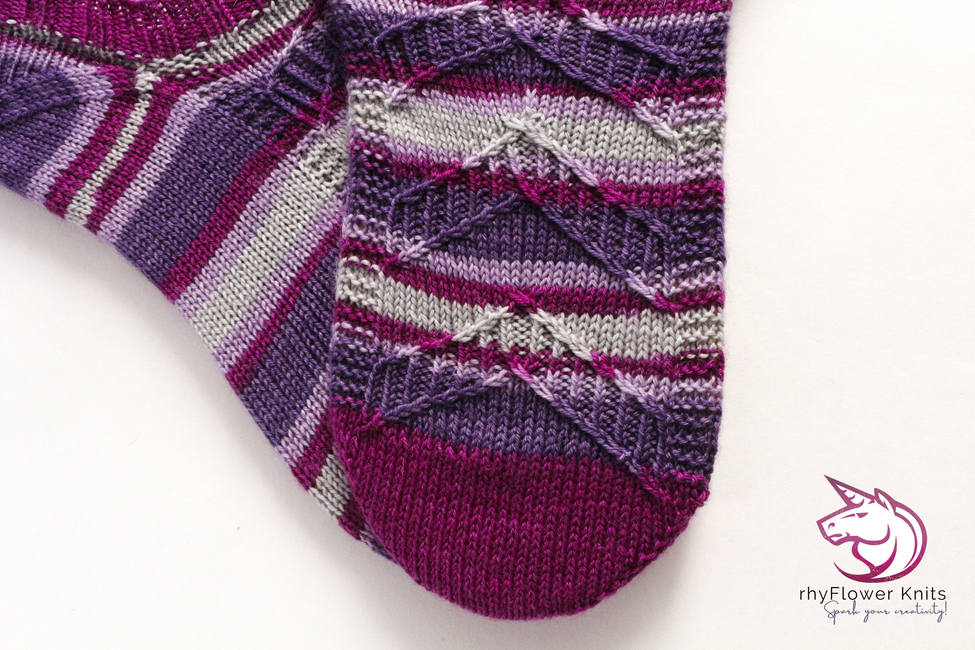The pattern has been reverse engineered, so the arrows will point up the sock regardless of whether you’re working toe-up or cuff-down. However; if you’re feeling adventurous and would prefer arrows to point down the sock instead, it’s quite easy to swap things and I’ve included notes on how to do so.
