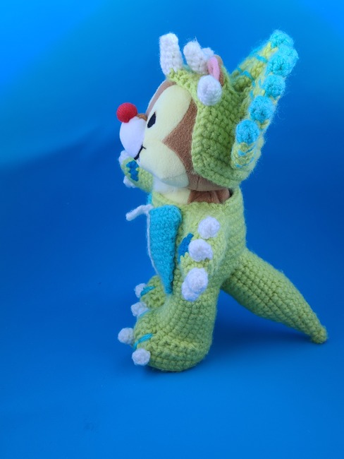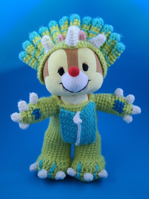The Purple Outfit, worn by Chip, is a Stegosaurus. The Green Outfit, worn by Dale, is a Triceratops. However, if you want to have other characters dress up as Dinos, feel free! I'd love to see all your friends in their new outfits!