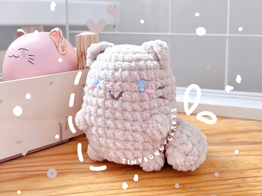 plush yarn in grey (~40g) pink plush yarn to add blush to the face (~30cm) plush or medium weight yarn in brown or black to embroider the facial features (can use different colour for the eyes, i used blue!) (~40cm)