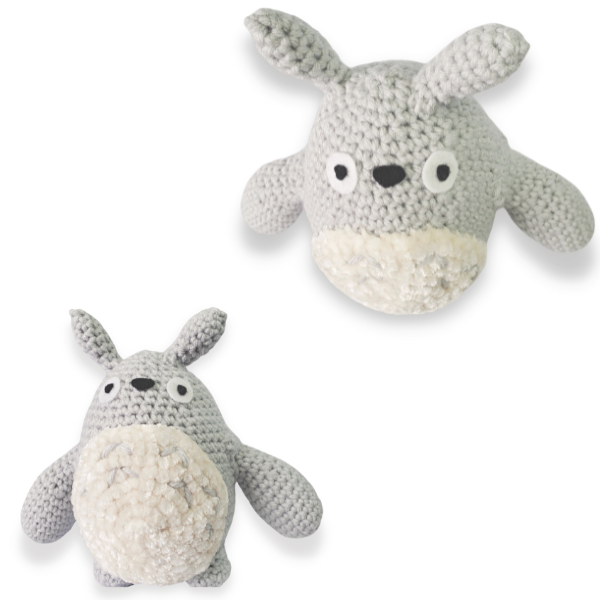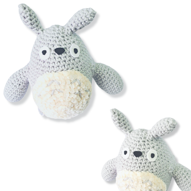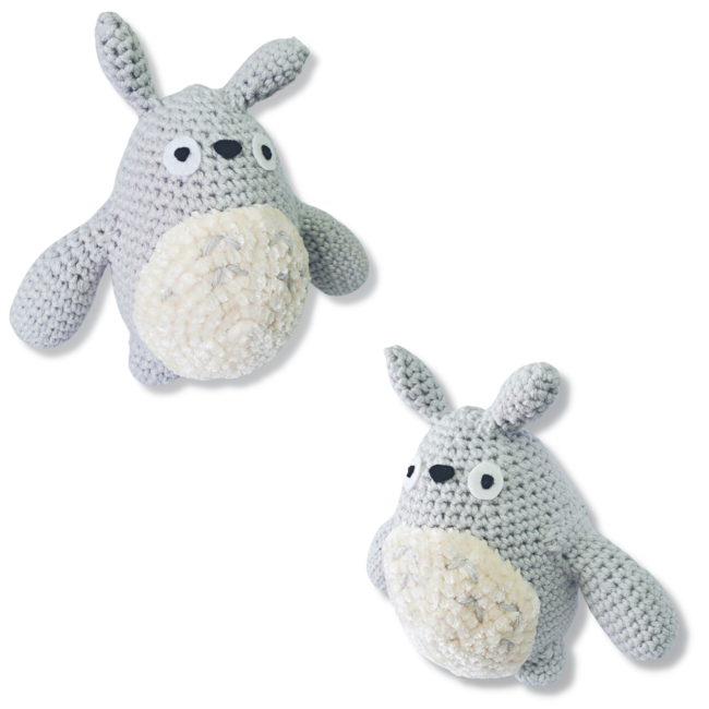"Totoro? Is that your name?" Crochet your snuggly forest spirit from the Studio Ghibli anime film My Neighbor Totoro. This grey Totoro crochet pattern can be made in a variety of shades and sizes if you adjust your hook gauge and yarn size. Intermediate amigurumi pattern. The Totoro amigurumi pattern is for intermediate crocheters. The finished grey Totoro plushie is 7" tall by 8" wide. This pattern is worked in both rounds and rows. Pay close attention to when the crochet pattern tells you you'll be switching from rounds to rows.