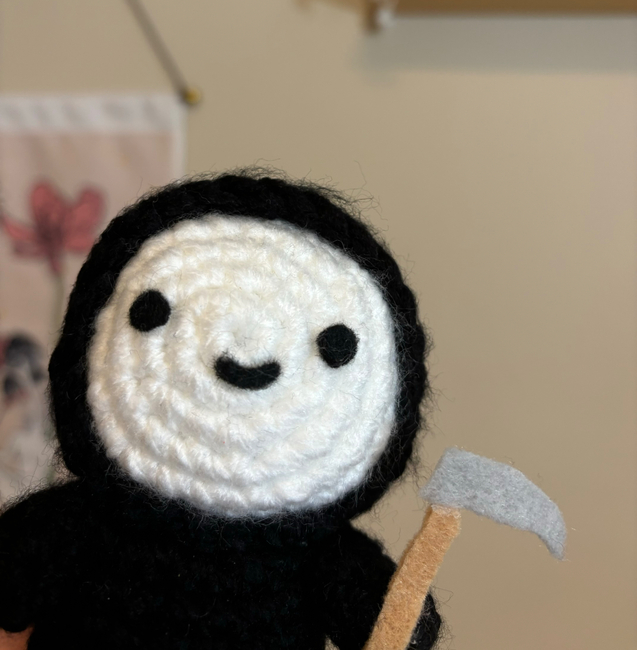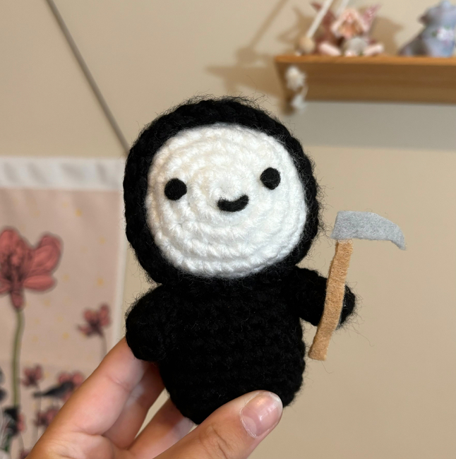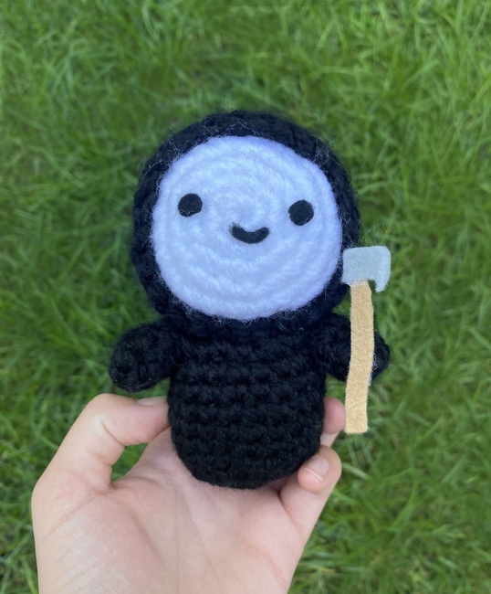 Cute grim reaper pattern! This pattern is beginner friendly and is perfect for the Halloween season.