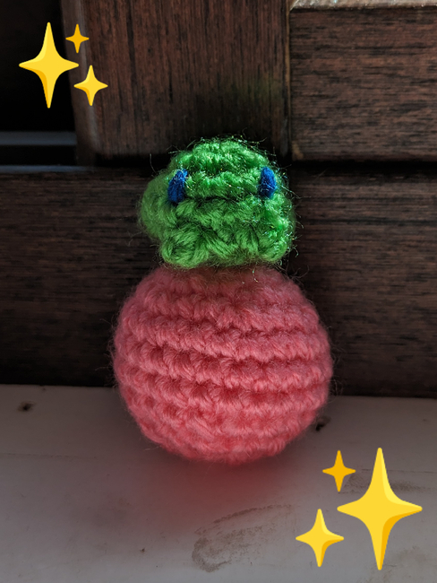 The Guardian of the Orb is a little frog who protects the magic orb he was given. This pattern works up pretty quickly. If you just make the frog it should take less than a half hour. I hope you enjoy making your own little guardian!