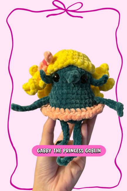 This is a perfect pattern for anyone looking to make an adorable and silly goblin. This small but adorable looking goblin offers endless color and texture possibilities, giving each one their own unique look!