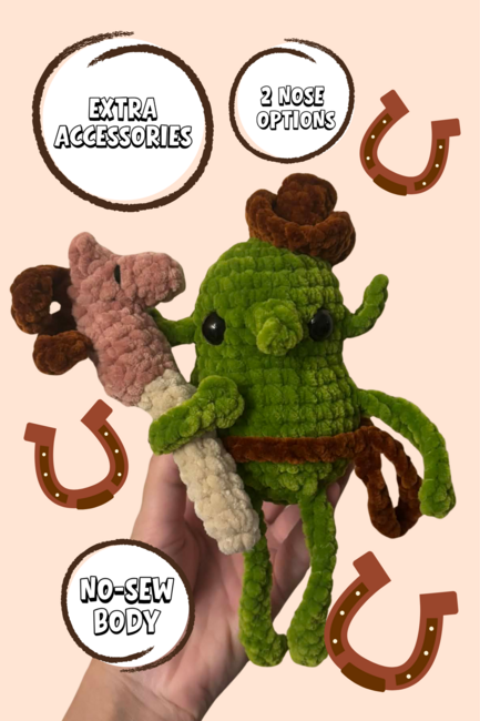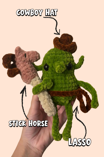 This is a perfect pattern for anyone looking to make an adorable cowboy goblin. This small but adorable looking goblin offers endless color and texture possibilities, giving each one their own unique look!