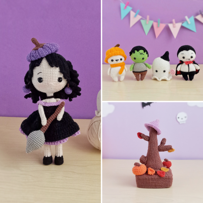 This crochet amigurumi pattern bundle will be your perfect guide to making the cutest Halloween amigurumis to use as crochet keychains on handmade gifts and decorations.