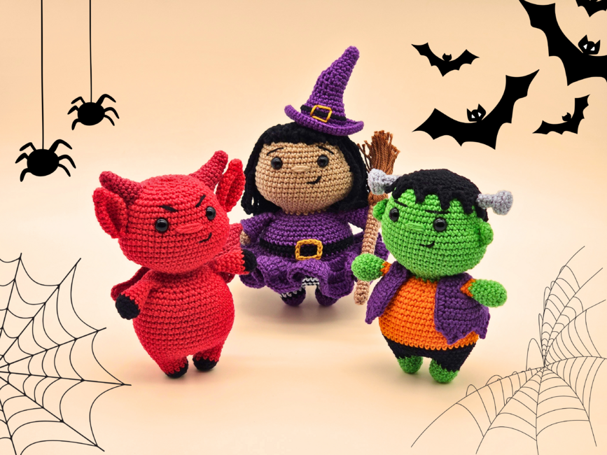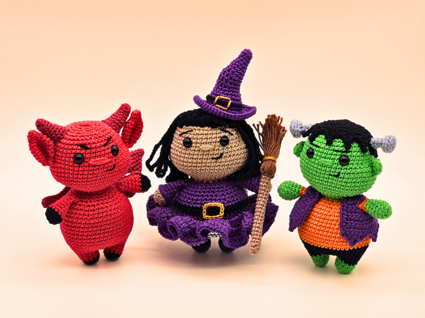 This 3-in-1 pattern bundle includes Trixie the Chunky Witch, Frankie the Chunky Monster and Chilli the Chunky Devil. The finished toys make perfect gifts for Halloween lovers. I have provided detailed instructions and photos, making it easy to follow for advanced beginner to intermediate crocheters. You can use most yarn types with this pattern - lightweight cotton creates a smaller decoration, whilst chunky plush yarn will give you a larger, cuddly companion.