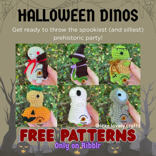 Get ready to throw the spookiest (and silliest) prehistoric party around with this 6-in-1 Halloween Dinos pattern! This t-rex pattern transforms into each dino with their own charm and a little chaos.