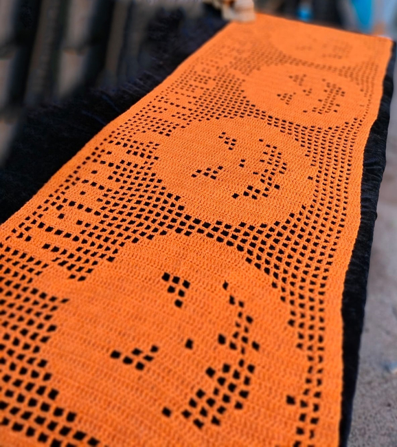 This is a filet crochet pattern with the image built into a graph/chart from which you make the runner, a Row by Row file