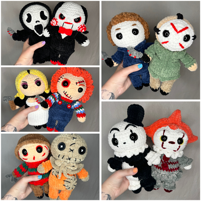 Creepy Clown, Slasher Clown, Hockey Mask Man, Halloween Slasher, Mr. Nightmare, Halloween Guardian, Evil Doll, Evil Bride, Evil Puppet, and Reaper.