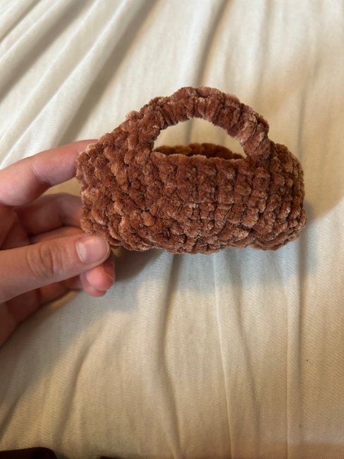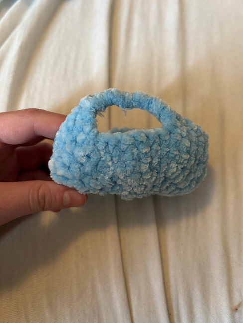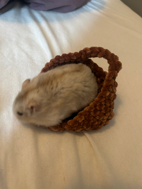 A cute little hamster bed! Its fluffy and has small handles
