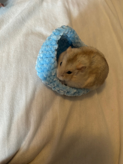 Hamster bed is an Intermediate Crochet pattern designed by Snuggly crochet for making an Accessories. A cute little hamster bed! Its fluffy and has small handles Don't leave hamsters with it unsupervised. The hamster can chew on it and get sick!!!