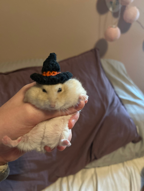 A cute little witch hat for your hamster! A perfect Halloween costume!