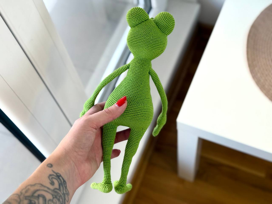 The Hans the Frog Crochet Pattern Posable Amigurumi with Removable Clothes & Curvy Detail pattern costs 6.00 USD on Ribblr.