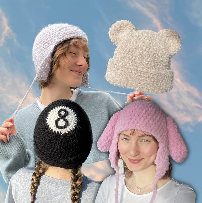 This bundle includes the 8-ball hat pattern, the teddy hat pattern, the bunny hat pattern and the ushanka pattern <3