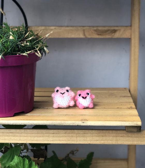 crochet hook ( I used a 3mm hook for the light pink frog and a 2mm hook for the hot pink frog)
