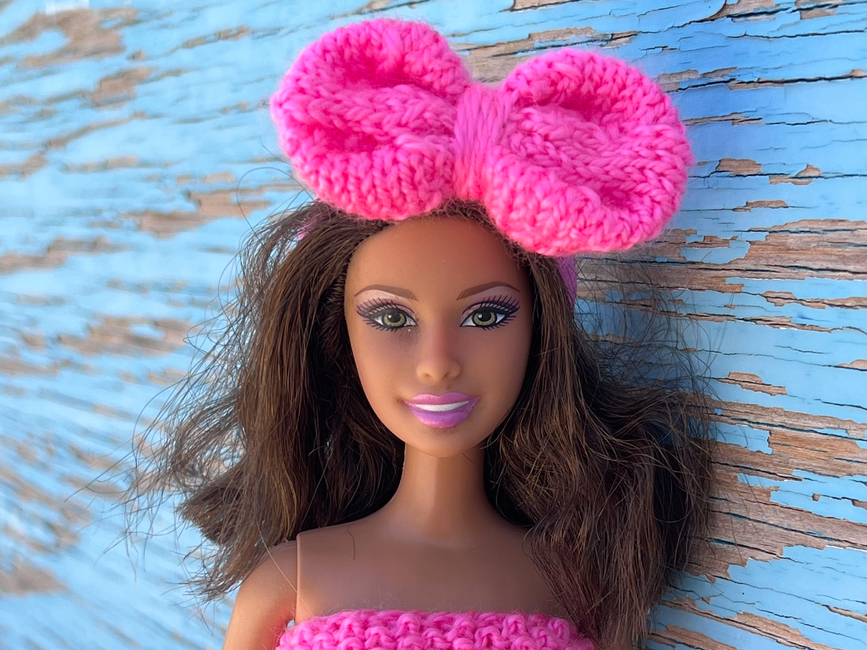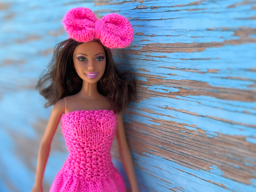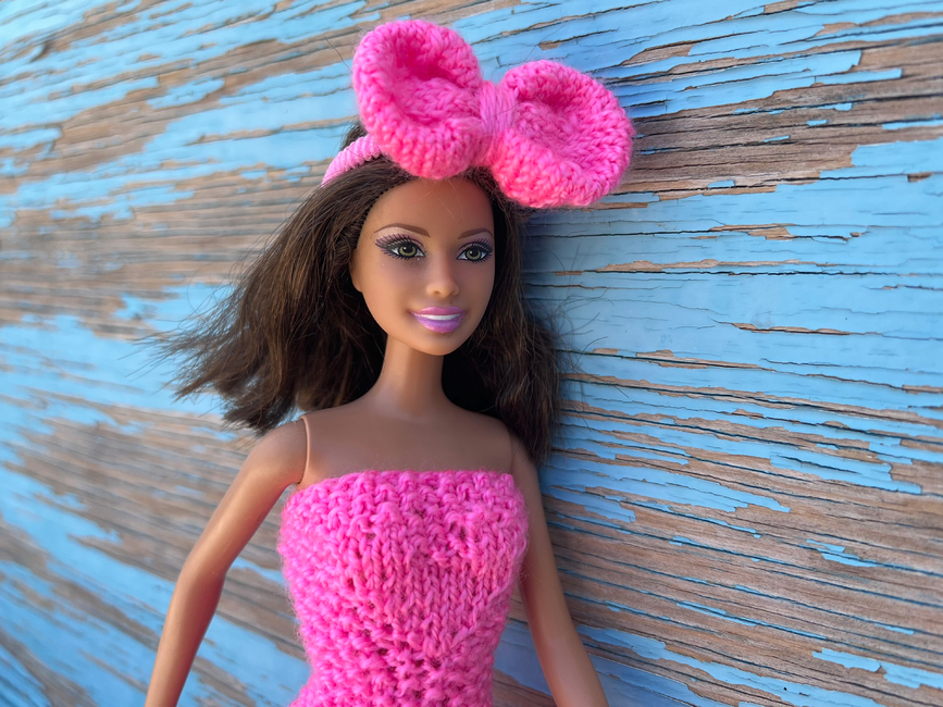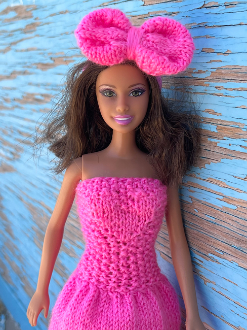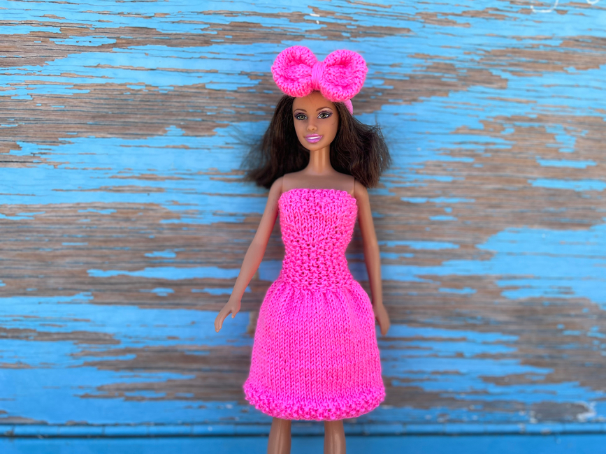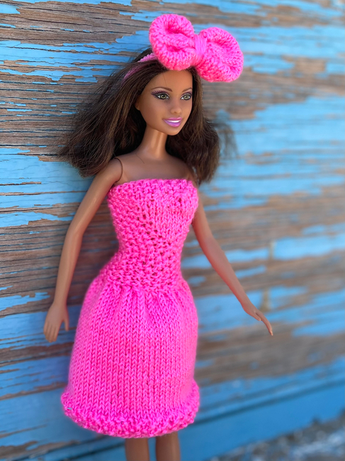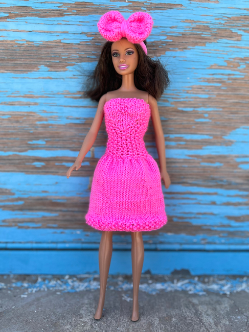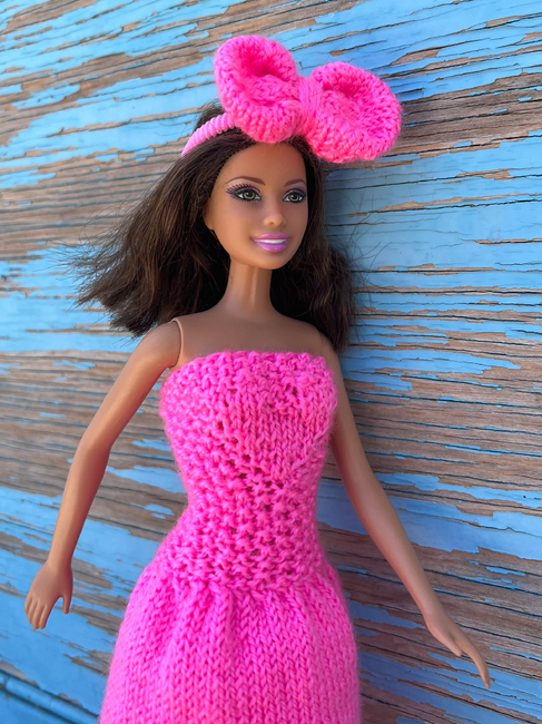This dress is perfectly suited for dolls measuring 11.5 inches (29 cm) in size. It is knitted in one piece with no seams. The design is safe and comfortable for children.