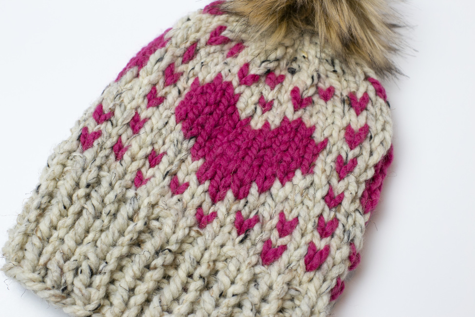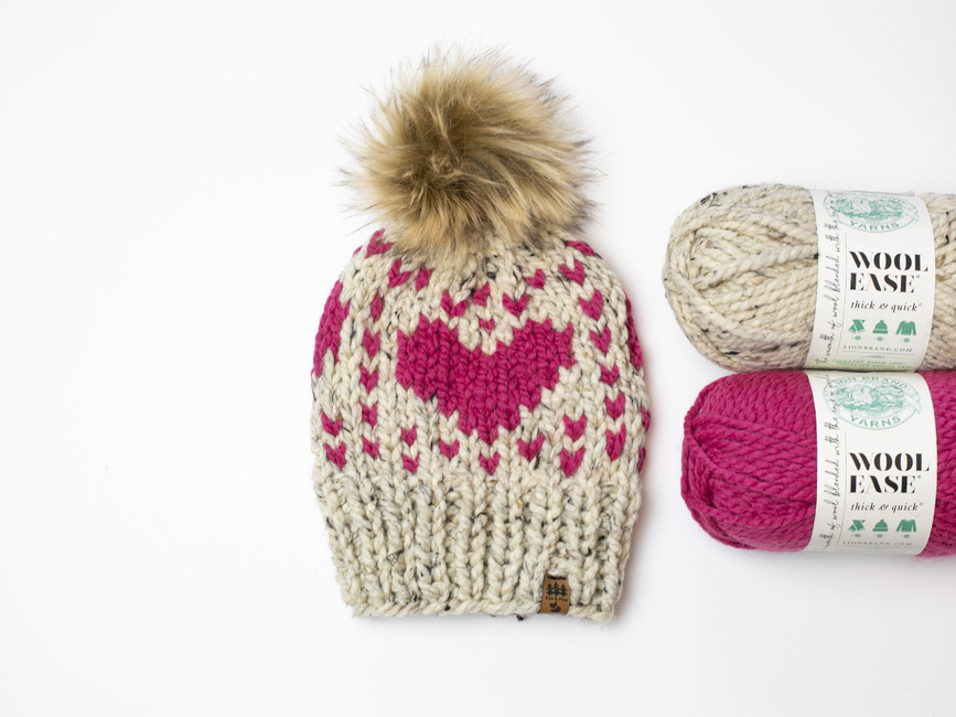 Our Hearts For Days chunky winter pompom hat knitting pattern is perfect for making handmade gifts for your loved ones.
