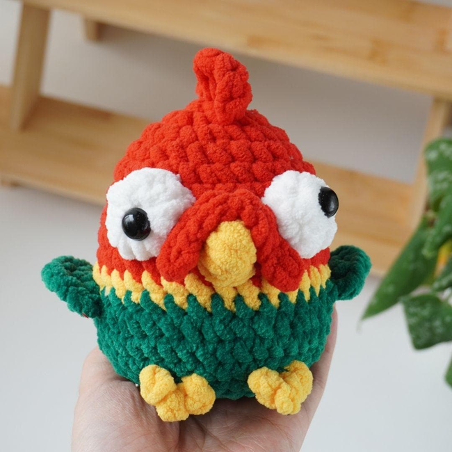 Hei Hei the rooster is ready for you to crochet! With bold colors and a playful design, this pattern provides detailed steps to bring this quirky bird to life.