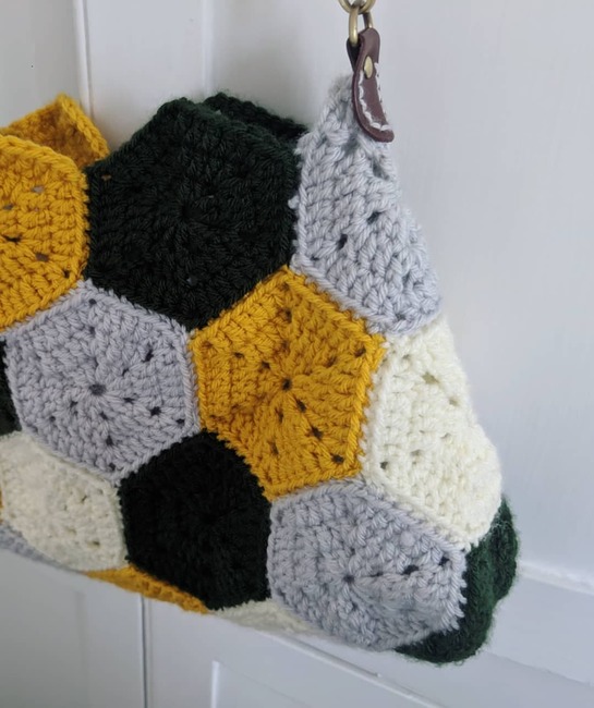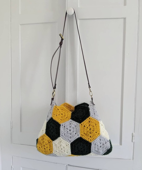 HookedByHandmade designed the Hexagon Bag pattern. Find more of their patterns on their Ribblr shop page.