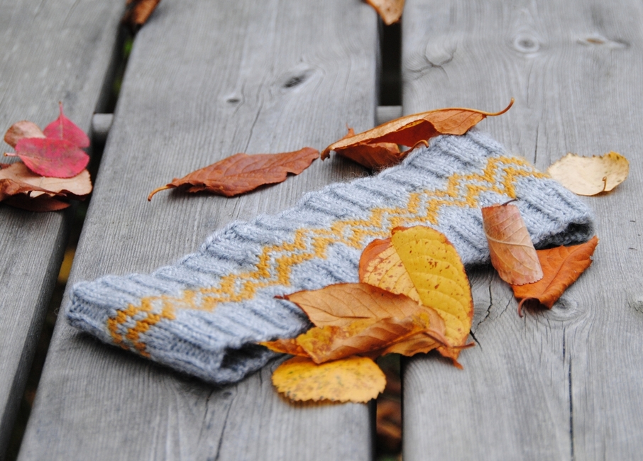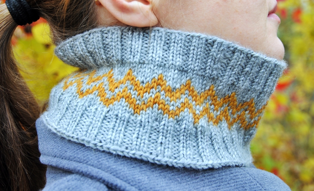 High Voltage is a stranded headband that doubles as a cowl, featuring a zigzag pattern that reminded me of the high voltage warning sign.