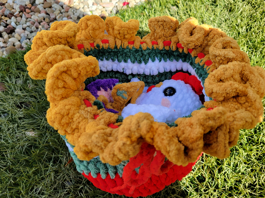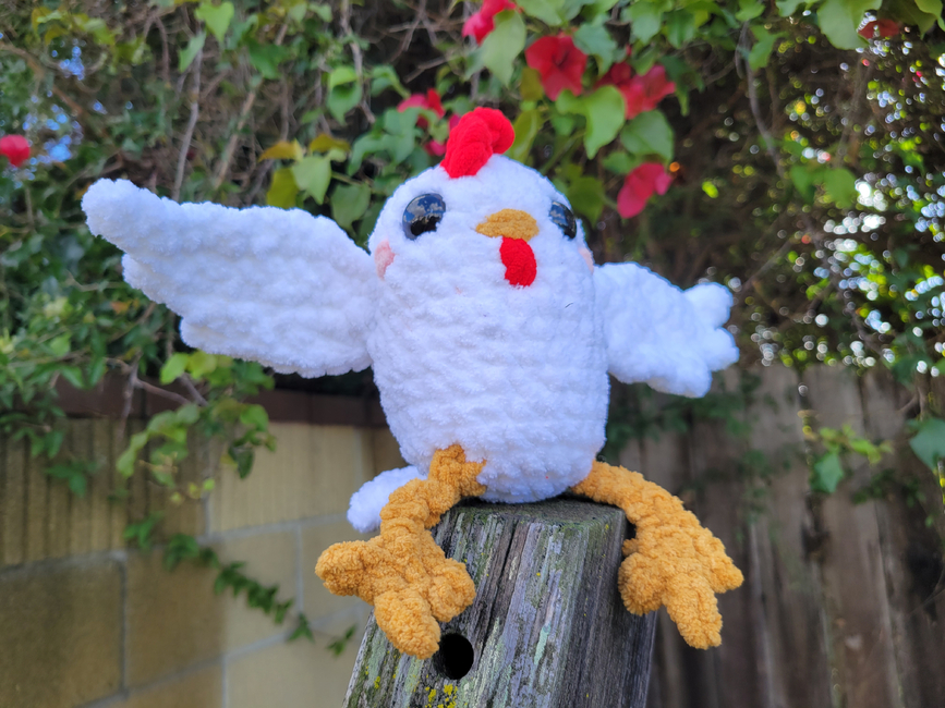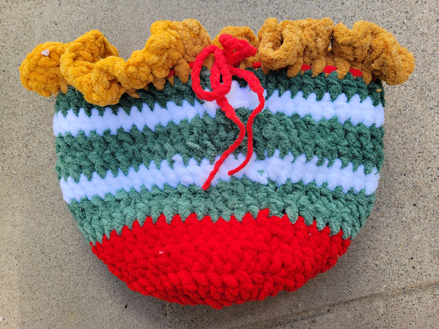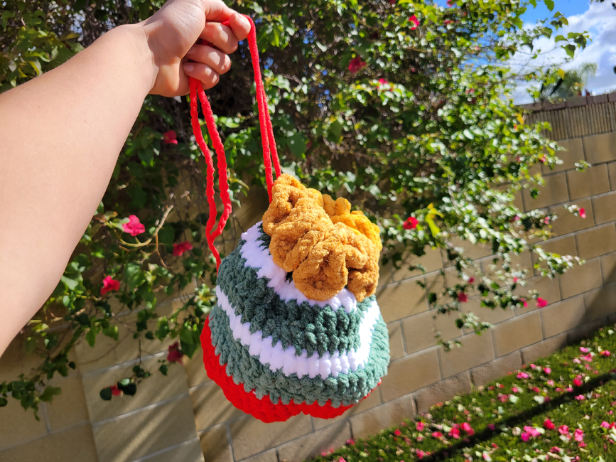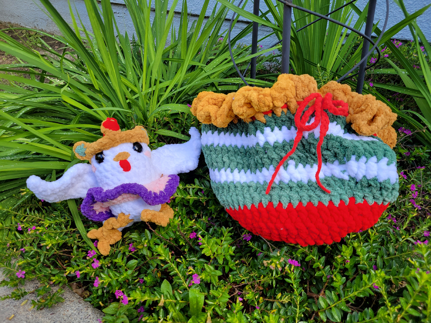 Here is my Christmas New Years special pattern! this pattern includes a small chicken princess ballerina plushie and a large red, yellow, green and white drawstring bag to hold the chicken in! This pattern is beginner friendly. You can change the amount of ruffles in your chicken's scrunchie tutu. If you found a mistake in this pattern please pm/dm me or if you are making a journal, please explain the problem in your journal or message. This is my second bird pattern from my shop, enjoy!