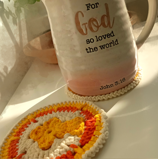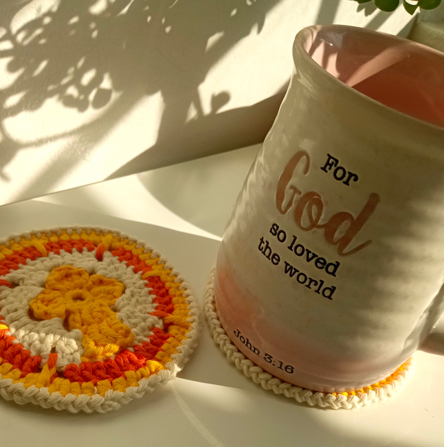 Express your love for Christ and add meaningful touch to your crochet projects with this Holy Cross Coaster Design! Sip on tea and immerse yourself in scripture with this one-of-a-kind coaster. I've created this coaster pattern because I couldn't find one anywhere - to my surprise.