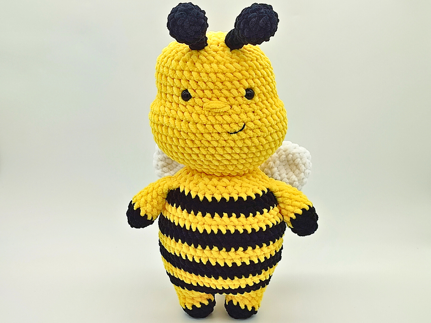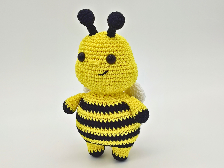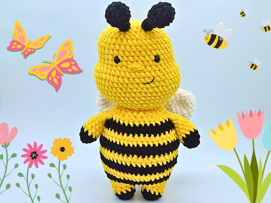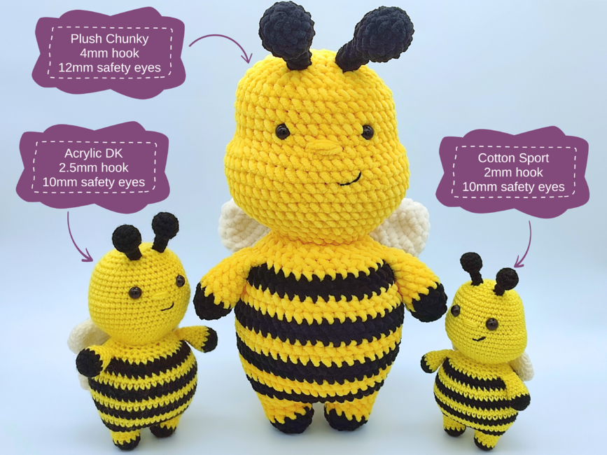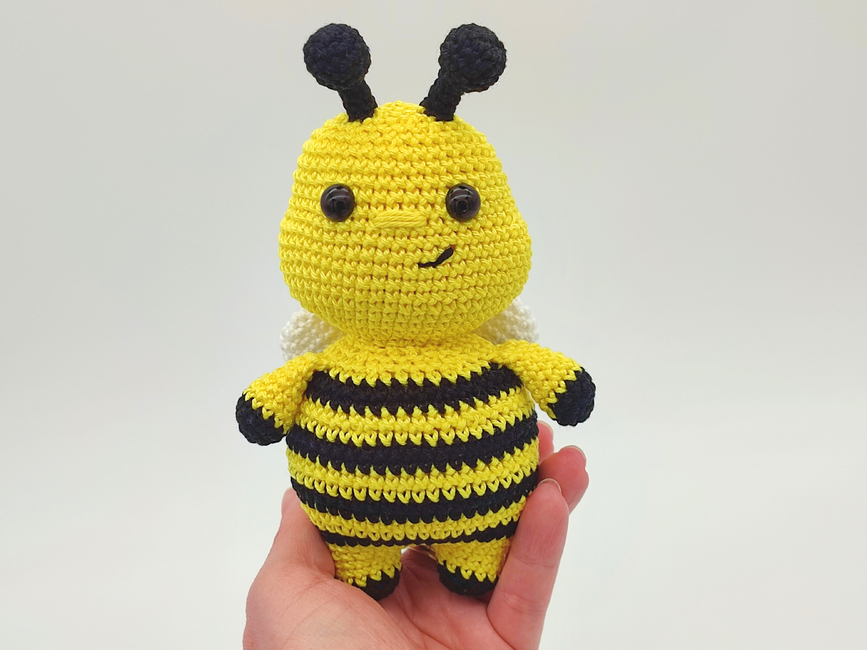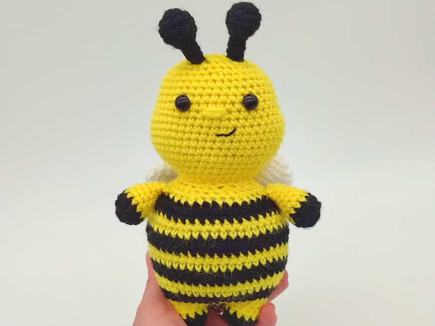 Introducing Honey the Bumblebee- an interactive crochet pattern for a low sew Amigurumi Bee.