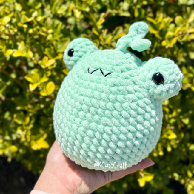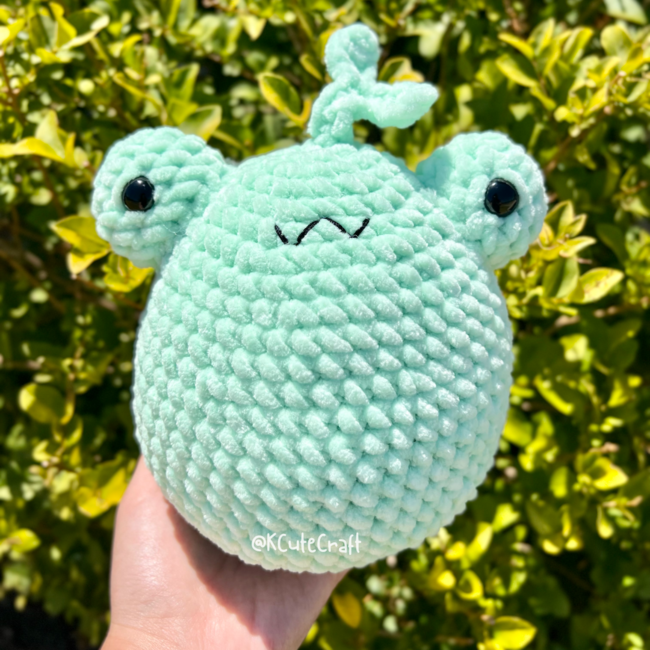 Ive fallen in love with the cute frog patterns in the amigurumi community and was inspired to create my own simple version! This is a beginner pattern made with size 6 yarn and minimal sewing. I used 15mm safety eyes, but you can substitute with felt or thread!