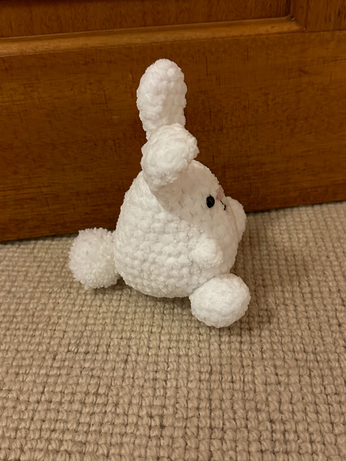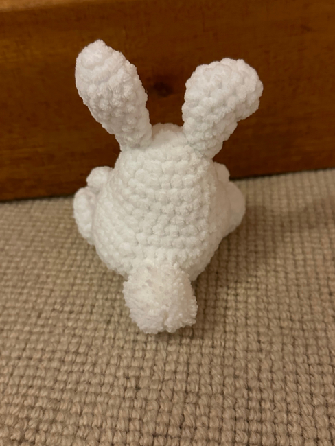 I used James C Brett flutterby yarn in white I also used acrylic white yarn for the tail I also used flutterby yarn in dusty pink for the nose, but any yarn colour or weight would be fine