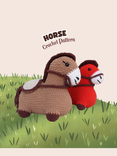 Thank you for purchasing the Horse Crochet Pattern! Get ready to create your own majestic and cuddly companion. This pattern guides you through crafting a beautifully detailed horse with a poseable body, flowing mane, and a cute embroidered face.