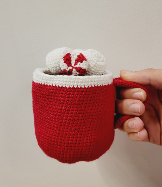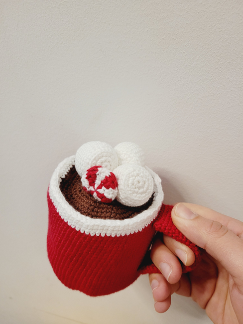 A cute mug of hot chocolate with 3 marshmallows and a peppermint. Perfect for warming up in the cold winter time.