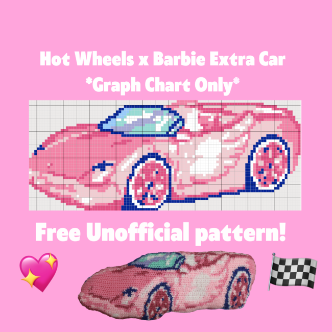 This pattern contains a graph chart/ pixel grid to create a crochet version of the Barbie x Hot Wheels version of the Barbie Extra Car! This pattern includes the PDF CHART ONLY, it DOES NOT contain written instructions. This is an unofficial pattern in no way affiliated with Mattel.